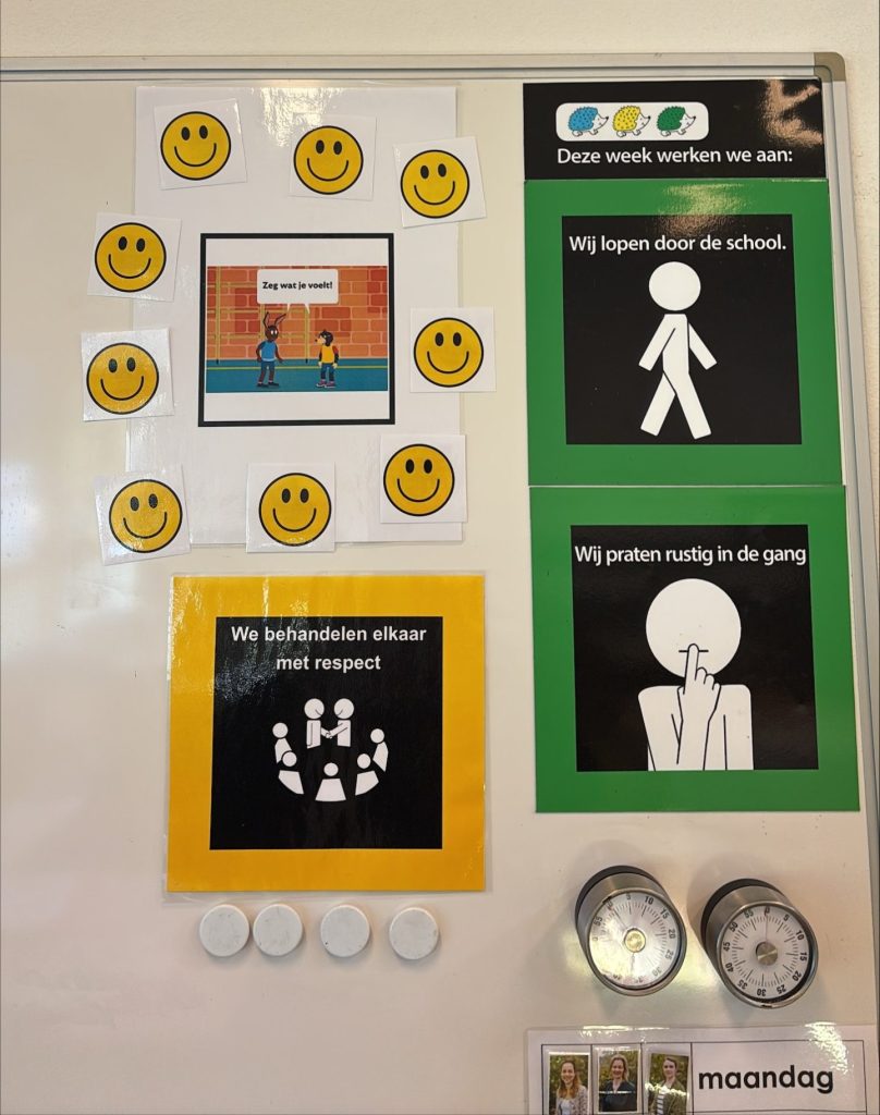 En hoe dat er in de praktijk uitziet? Met veel spel, samenwerken en plezier maken. “We doen kennismakingsspelletjes, samenwerkingsopdrachten, gedragslessen, maar sluiten ook gewoon aan bij het spel van de leerlingen en sturen op samenspel.”